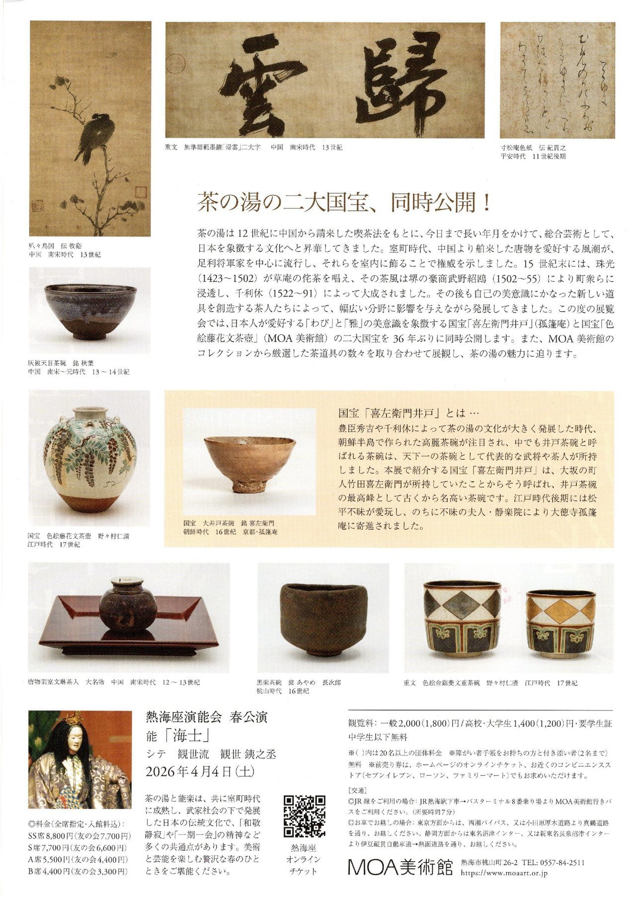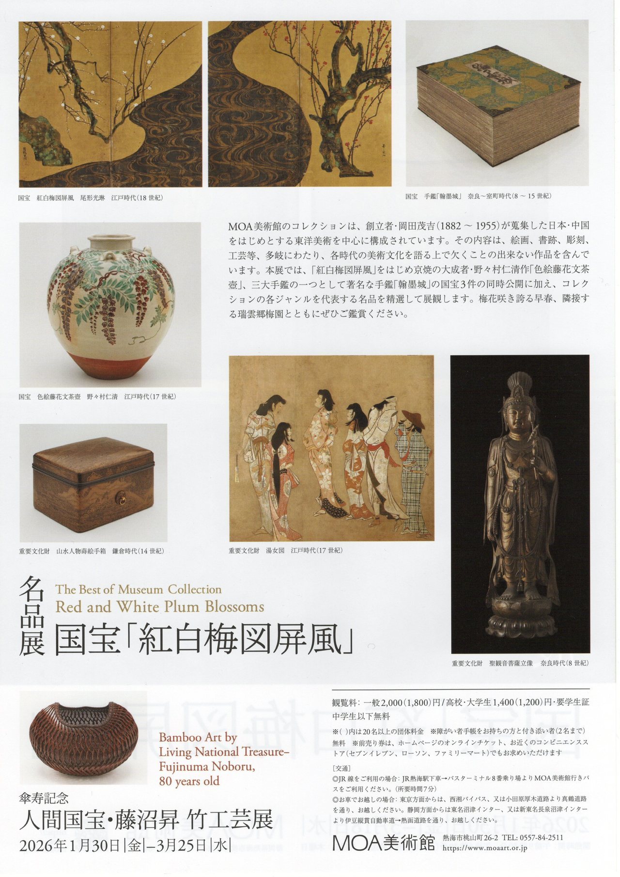 7万坪にも及ぶ熱海の高台に建てられたMOA美術館。館内には能楽堂や金の茶室、メインロビーやムア広場からは伊豆大島や初島など、美しい絶景が望めます。施設内には、春には桜やツツジ、初夏には新緑、秋には紅葉と四季折々に違った姿を見せる庭園も完備。アートと自然を味わいながらリゾート気分でゆっくりとお過ごしください。
